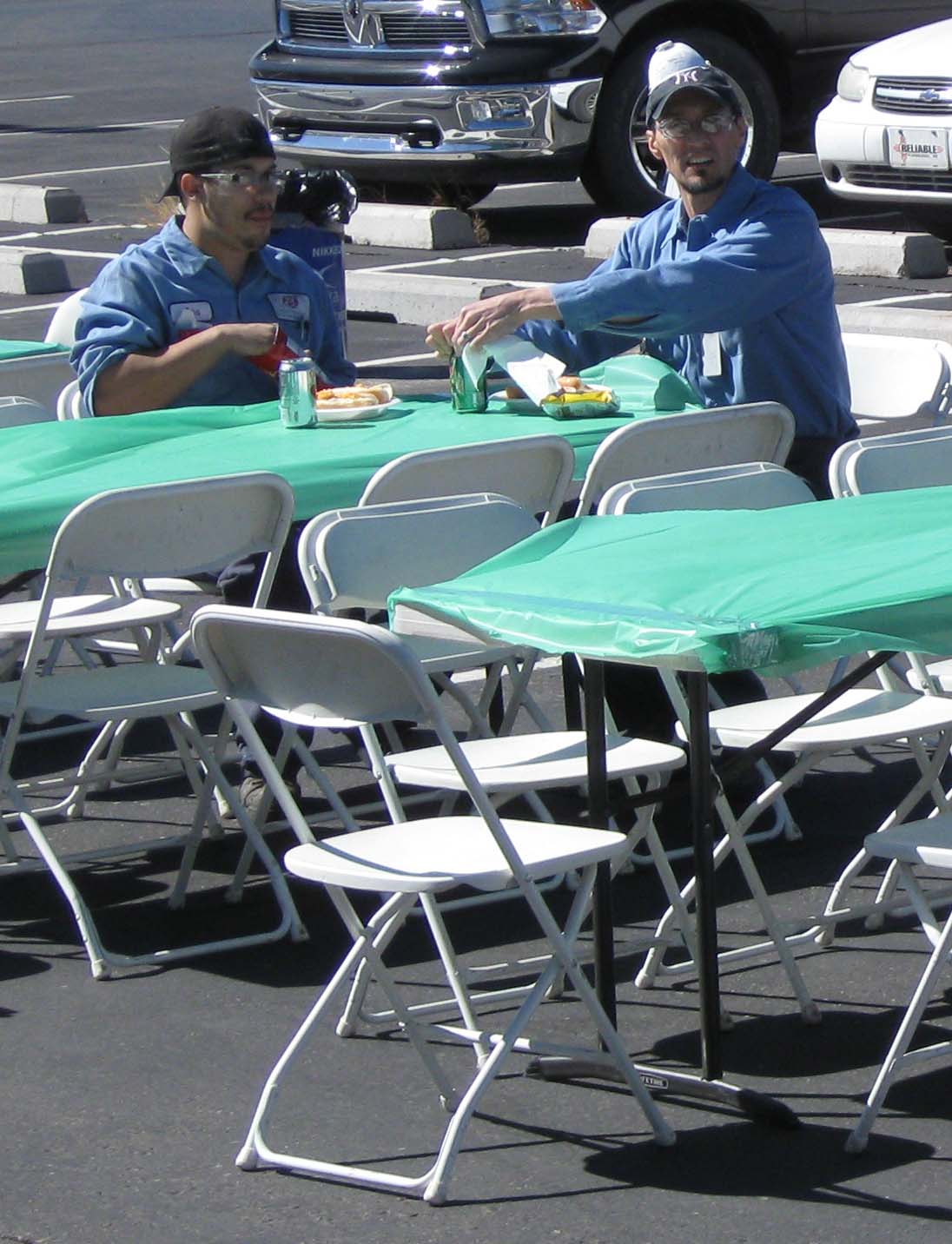 A picnic of hot dogs, chips, and sodas was held for everyone at the plant,