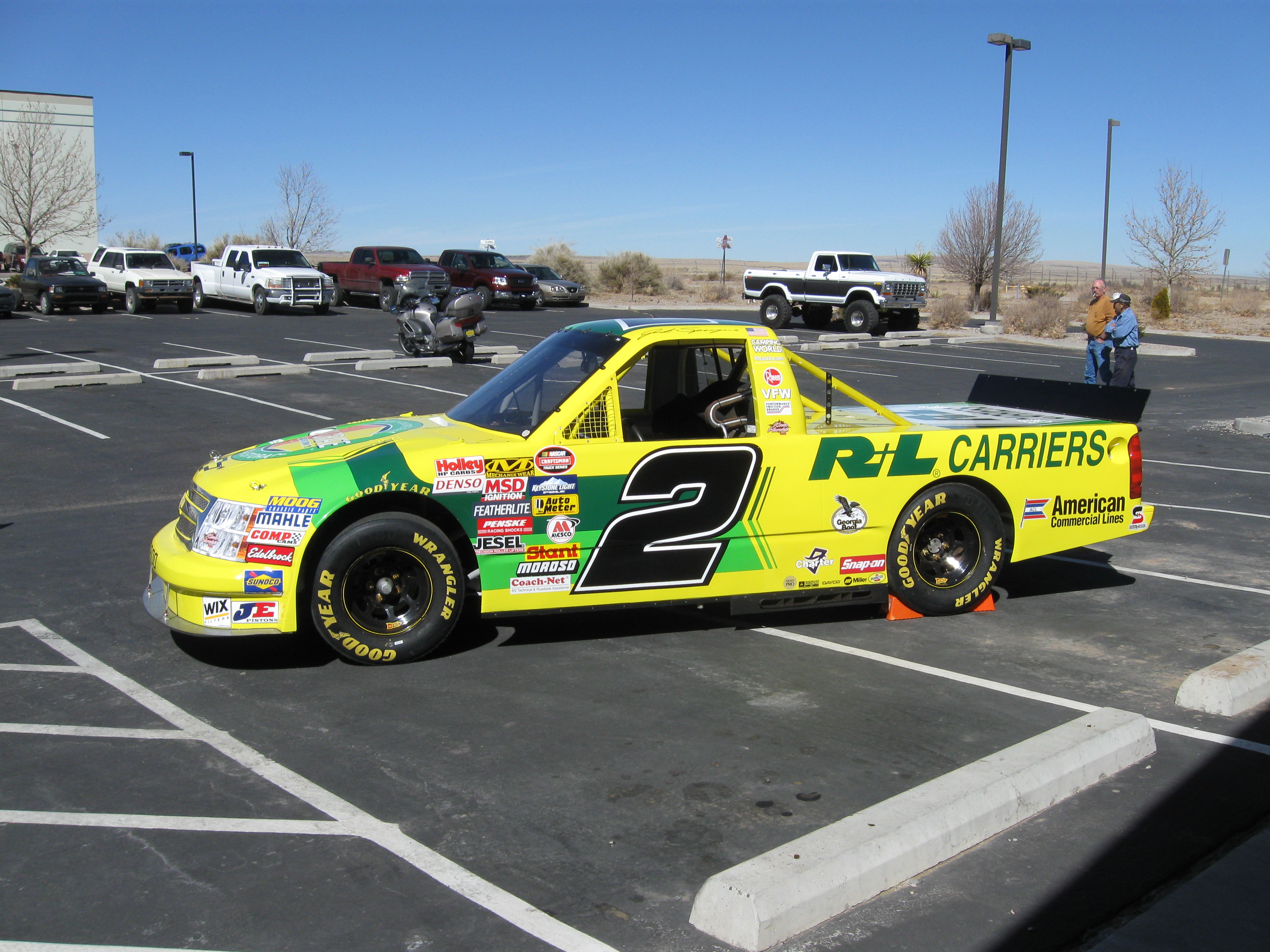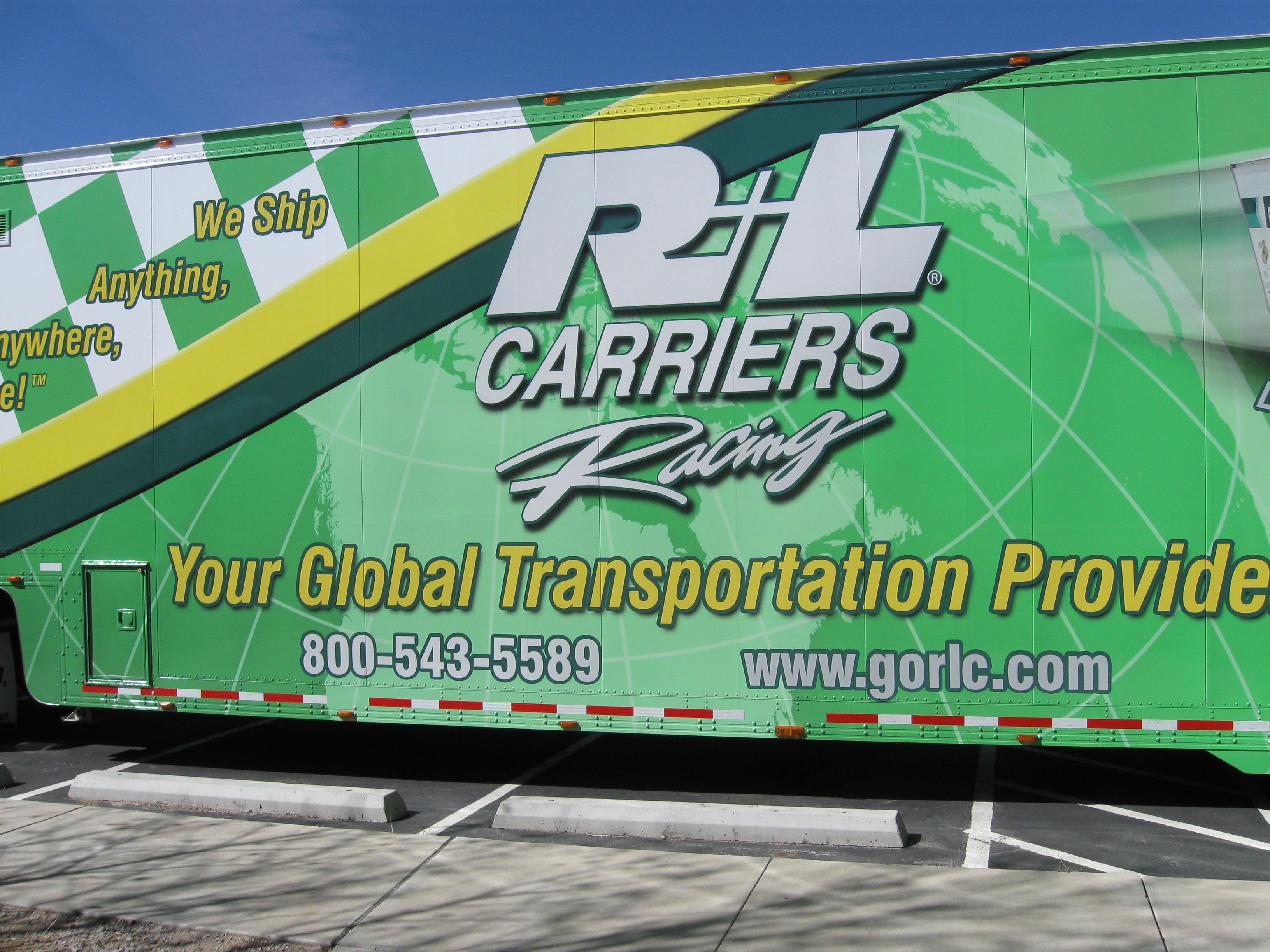 Jeff Ou, Exectutive Vice President from Taiwan; Alan Lee, General Manager, Eric Sun, Sales Manager, and Bob Zhang, Chief Engineer, all from shanghai, China, were pleasantly suprised to find R & L carriers racing and their NASCAR Racing Truck in the plant's parking lot.